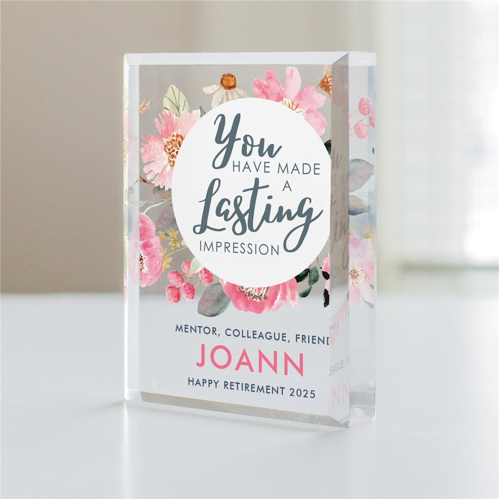 This Personalized Floral Lasting Impression Keepsake makes a great retirement gift for that special coworker.