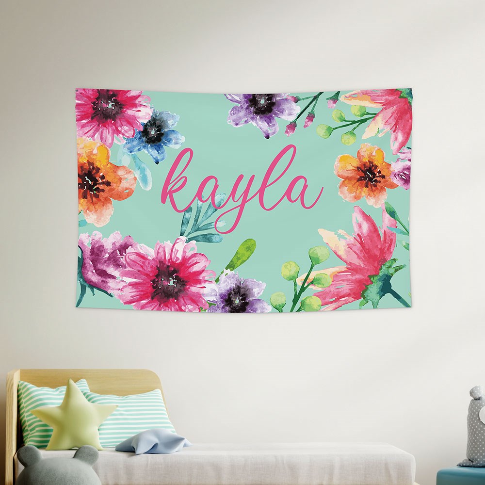 Celebrate their style with cool color and personalized flair with our Personalized Floral Name Wall Tapestry.