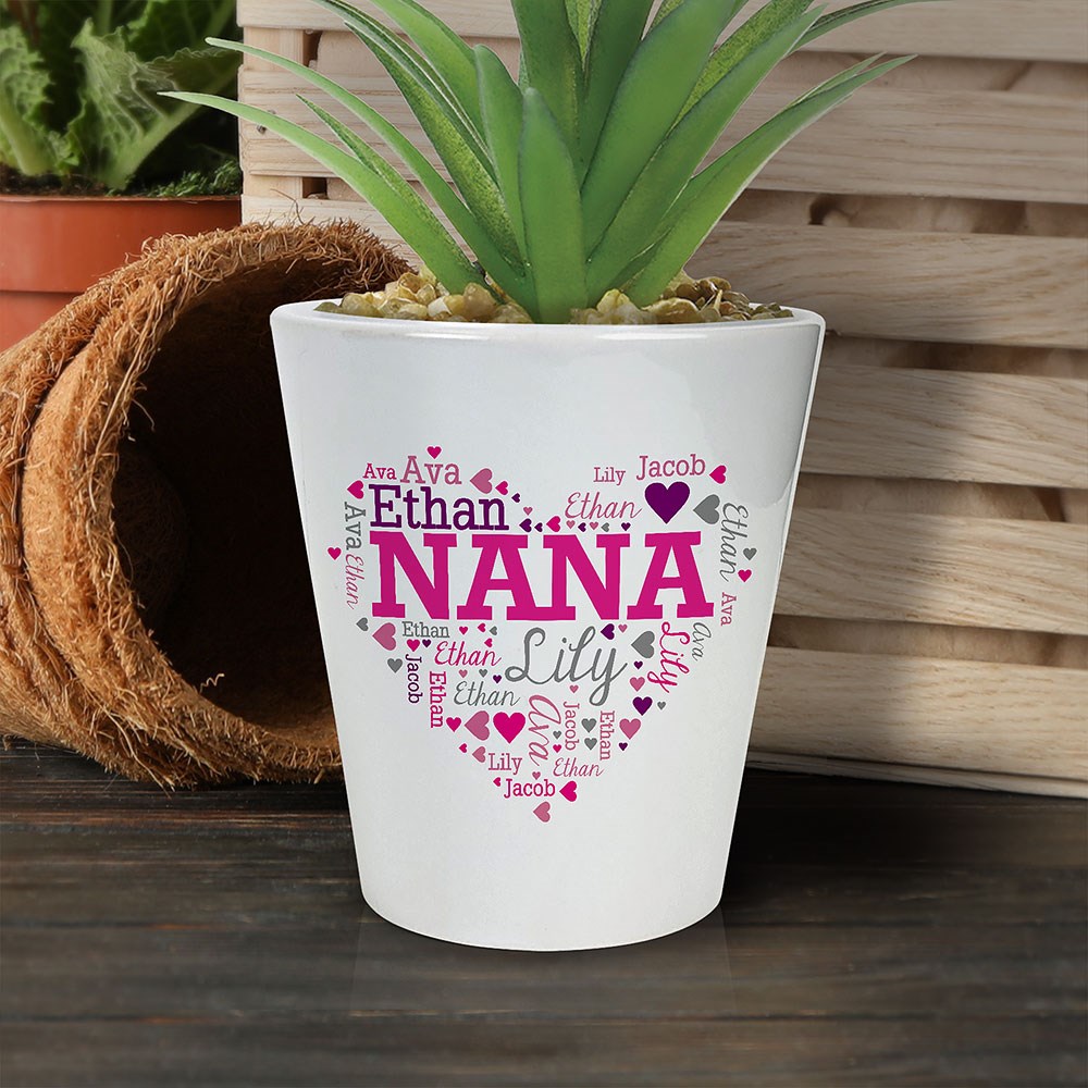 Celebrate someone special with this unique and heartfelt gift.This Personalized For Her Word Art Small Ceramic Flower Pot can be personalized using our one of a kind word art technology. Enter in any central name or title, and surround it with any names words or symbols.