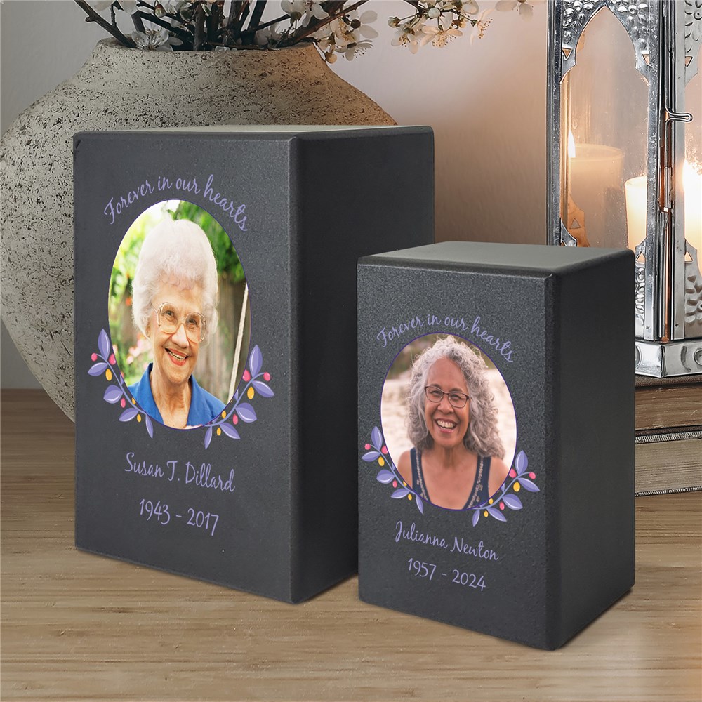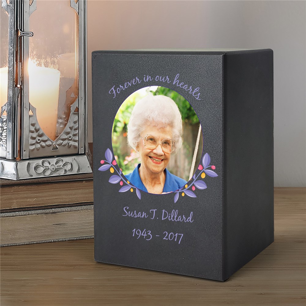 Durable, wooden cremation urn with an attractive dark graphite finish.