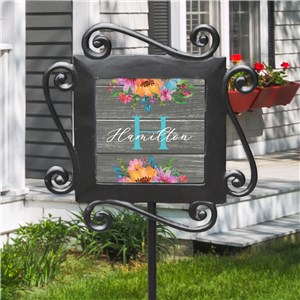 .Personalized Wood & Floral Magnetic Yard Sign Set