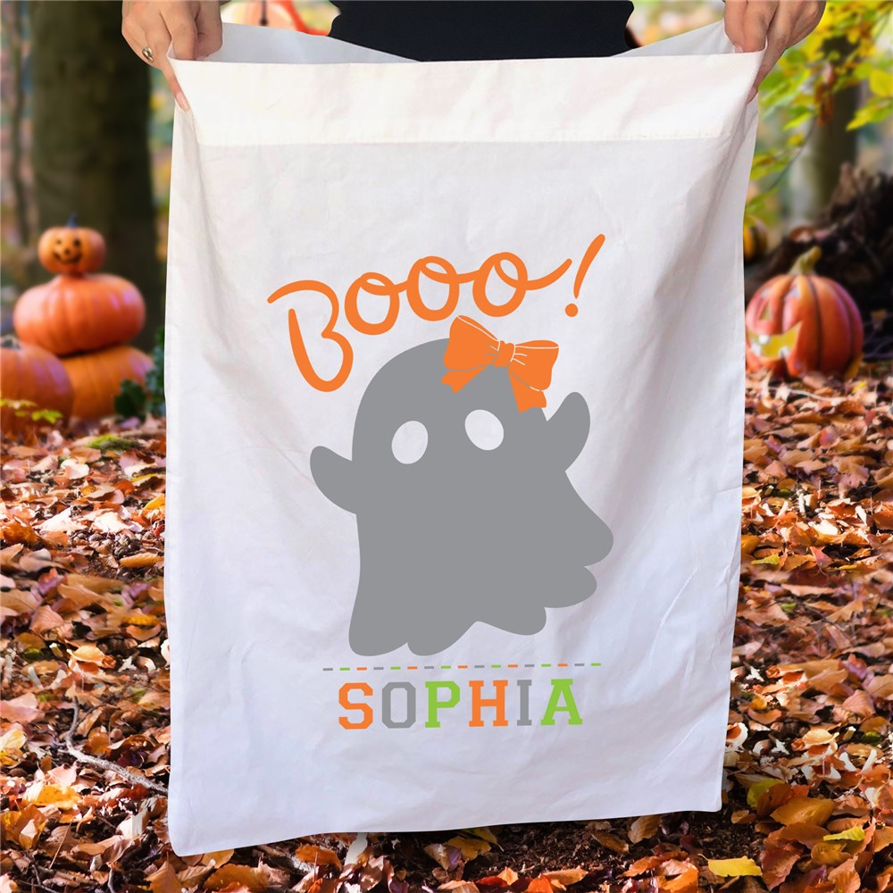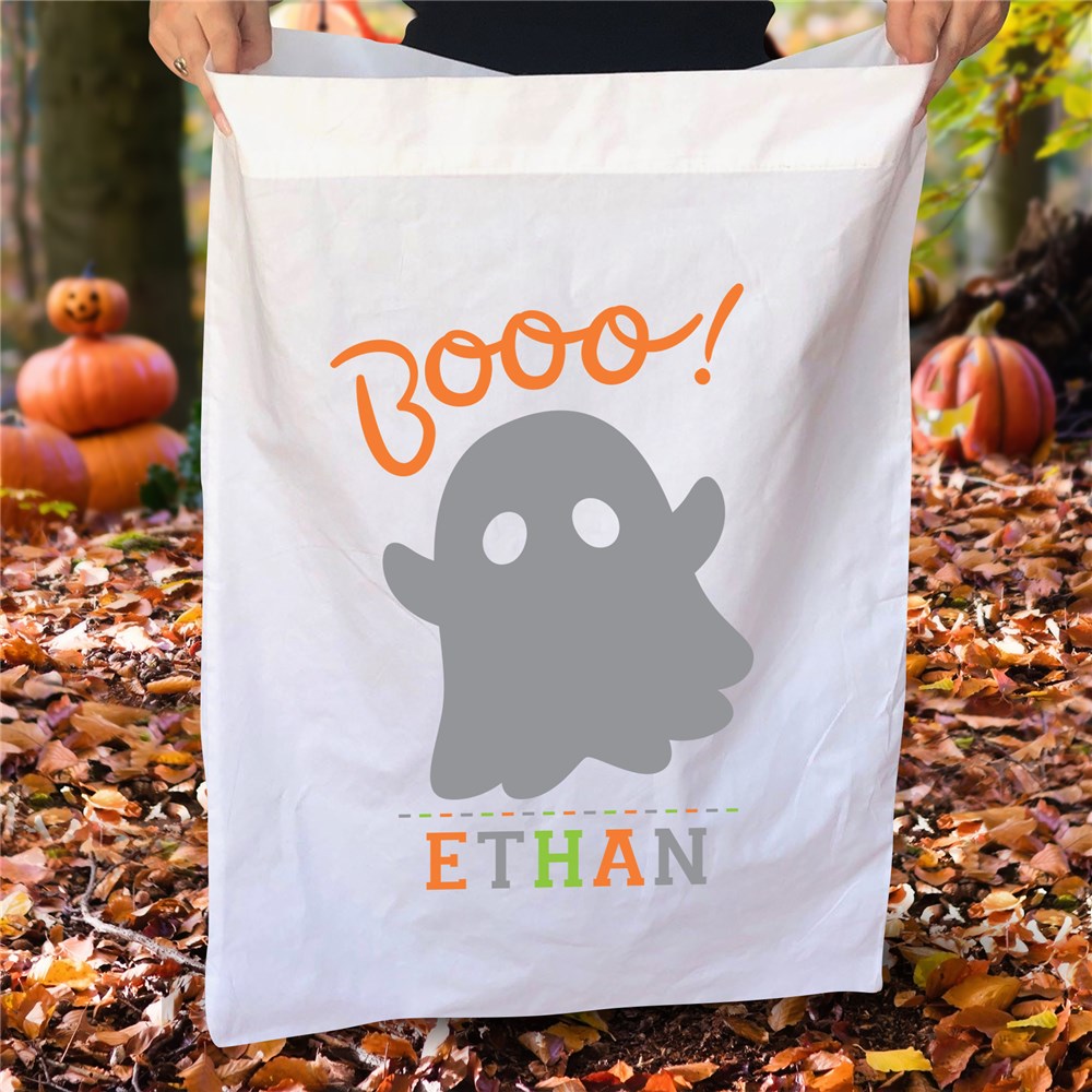 Their candy haul will be huge this Halloween using our Personalized Ghost Trick or Treat Sack!