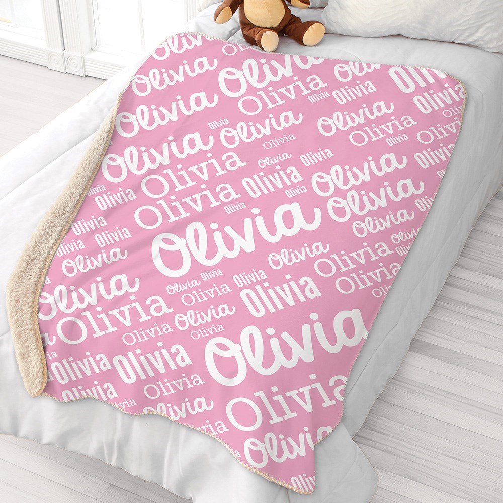 1Personalized Girl Word-Art Sherpa Blanket