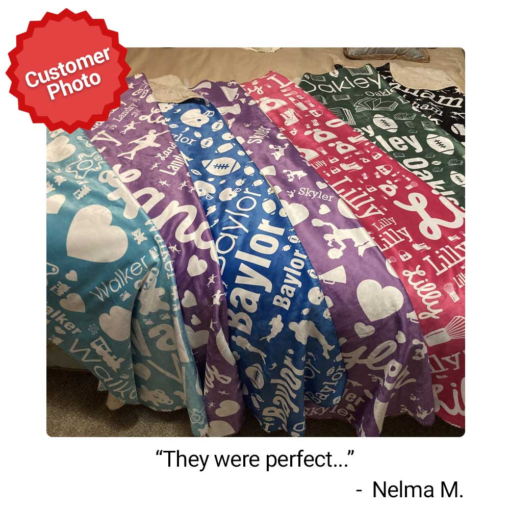 • **Video below is meant to convey overall look of 37x57 sherpa blanket; designs and personalizations will vary.**