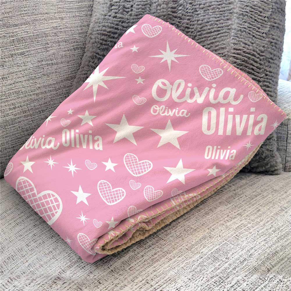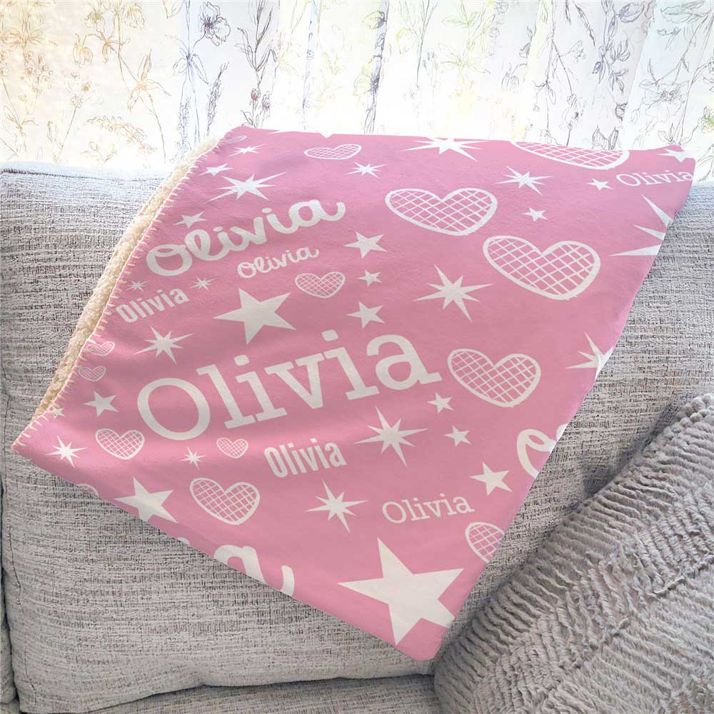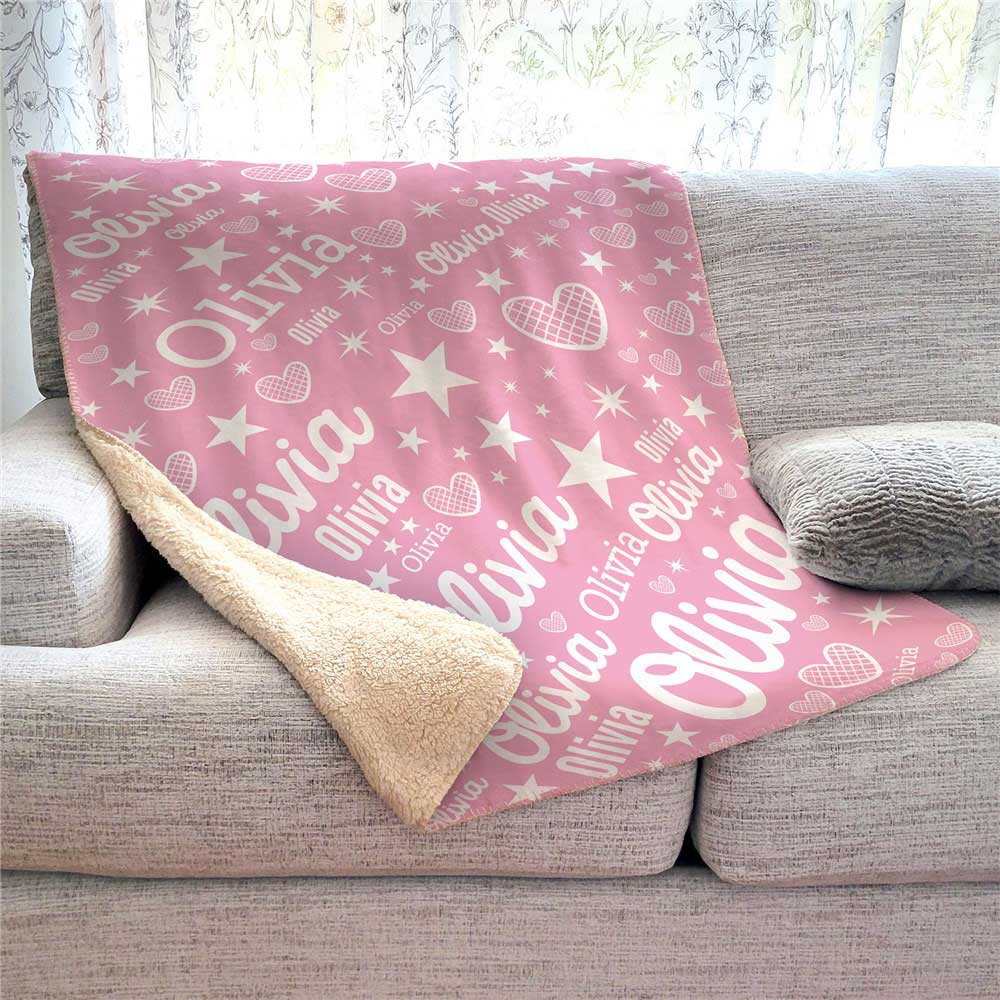Covered in just her name, this personalized word-art sherpa blanket is an excellent keepsake for anyone that loves pink!