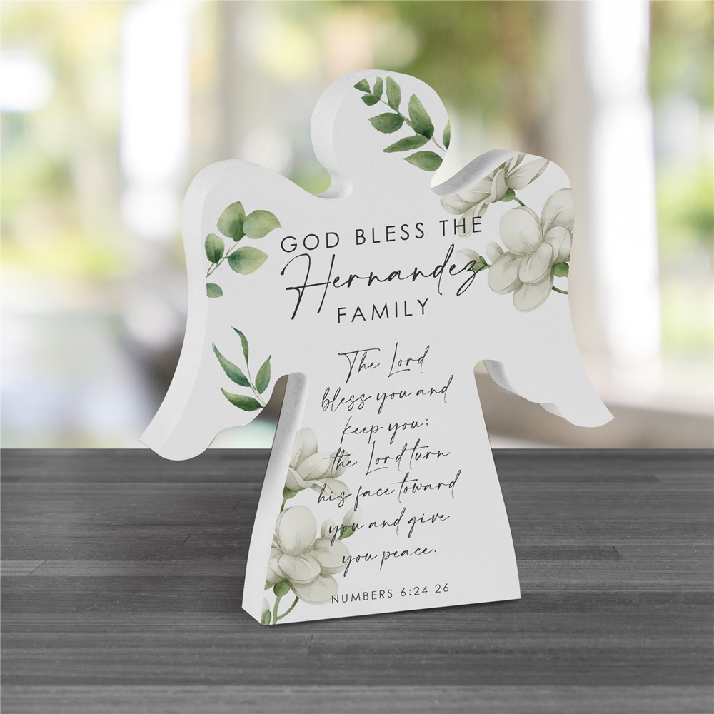 Any family with a strong love for their Christian faith will be happy to add our Personalized God Bless Verse Angel Shaped Sign to their home decor.
