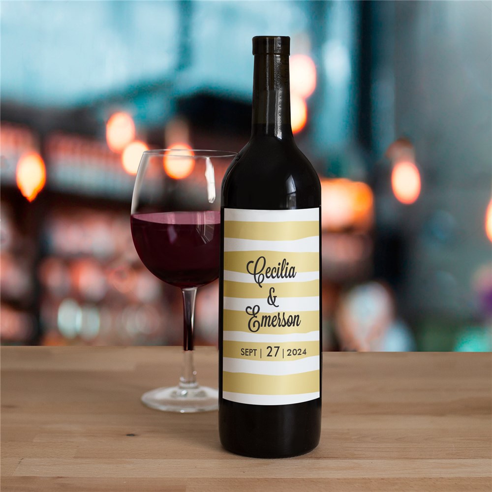 Personalized Gold Stripes Wedding Wine Bottle Labels