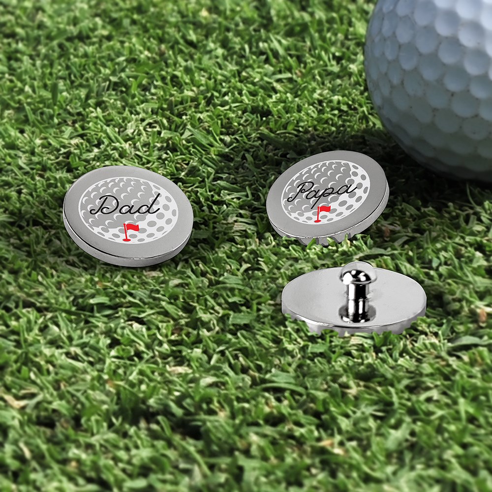 Celebrate your favorite golfer with this Personalized Golf Ball Title Golf Ball Markers Set.We will personalize this set with any title - like Dad, Coach, Papa, or a nickname – to make it uniquely theirs.