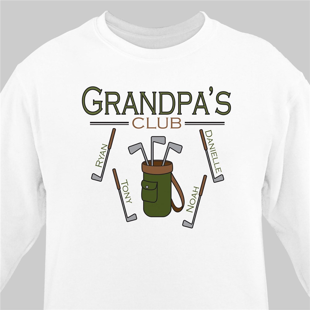 Additional Details If he enjoys the fun game of golf, then he is sure to enjoy our collection of Personalized Golf Gifts! Our line of unique golf gifts make excellent gifts for Birthdays, Father's Day or just because. Make this Personalized Golf Club Sweatshirt a wonderful gift for Grandpa to enjoy along with our Personalized Golf Club Coffee Mug &  our Personalized Golf Club T-Shirt as well.