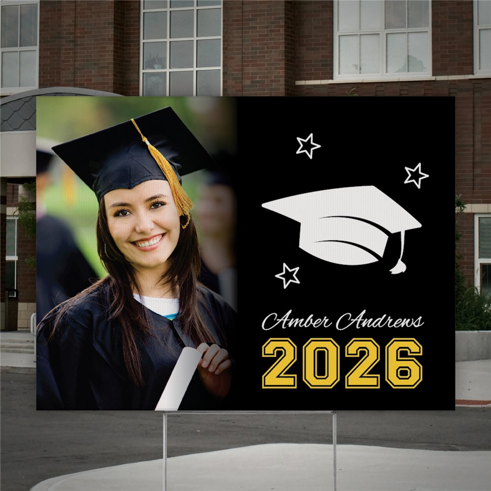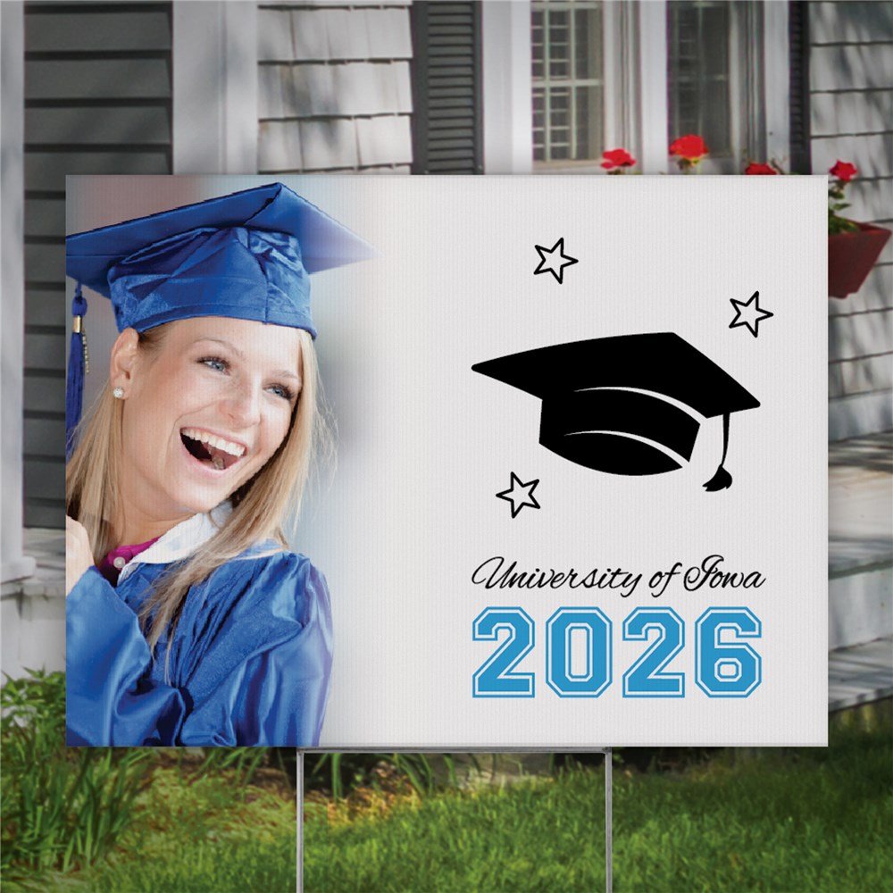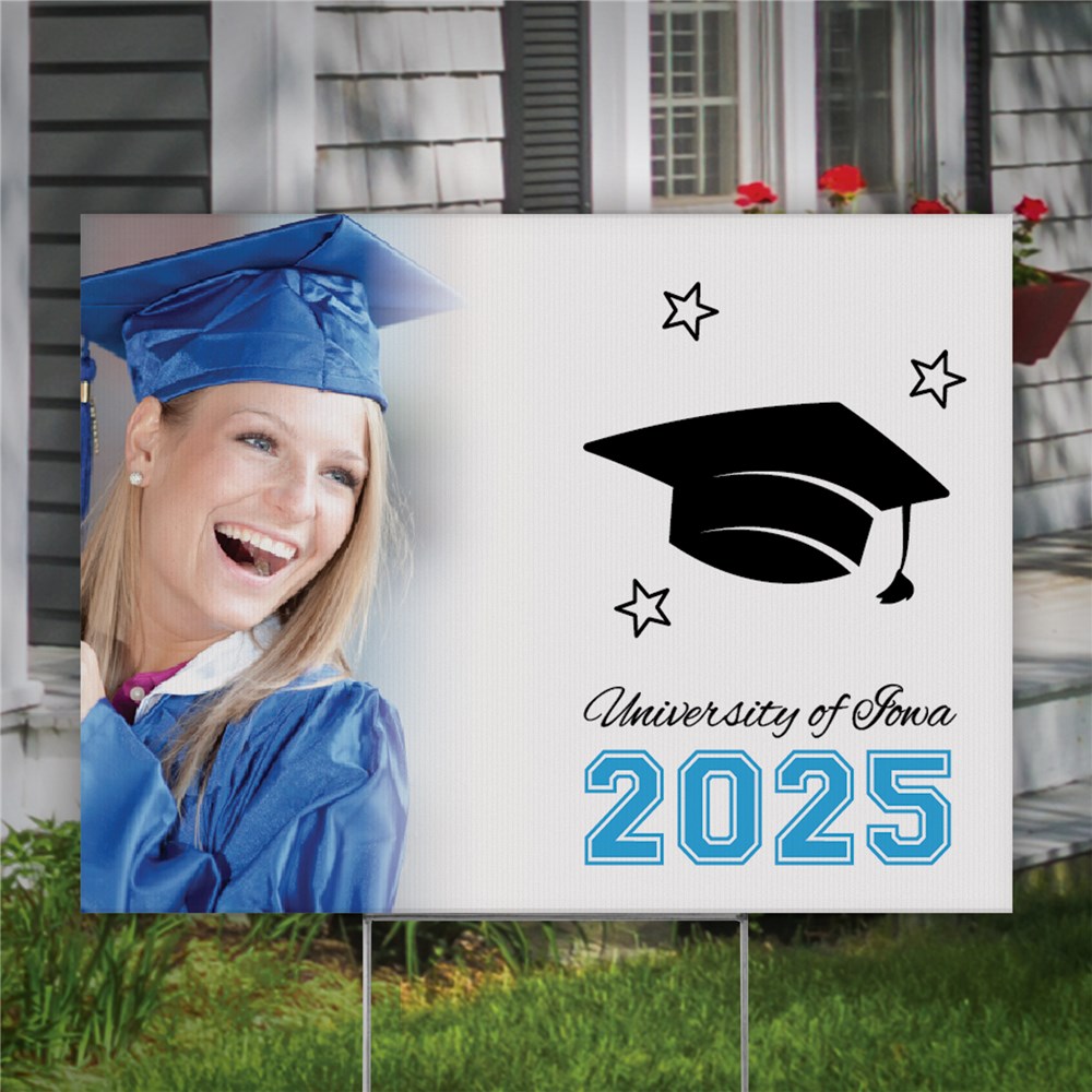 Make your graduate feel extra special with this Personalized Grad Photo Corrugated Yard Sign.Featuring a custom photo, any message, school colors, and graduation year this bold and vibrant sign is perfect for showcasing their achievement for the world to see.