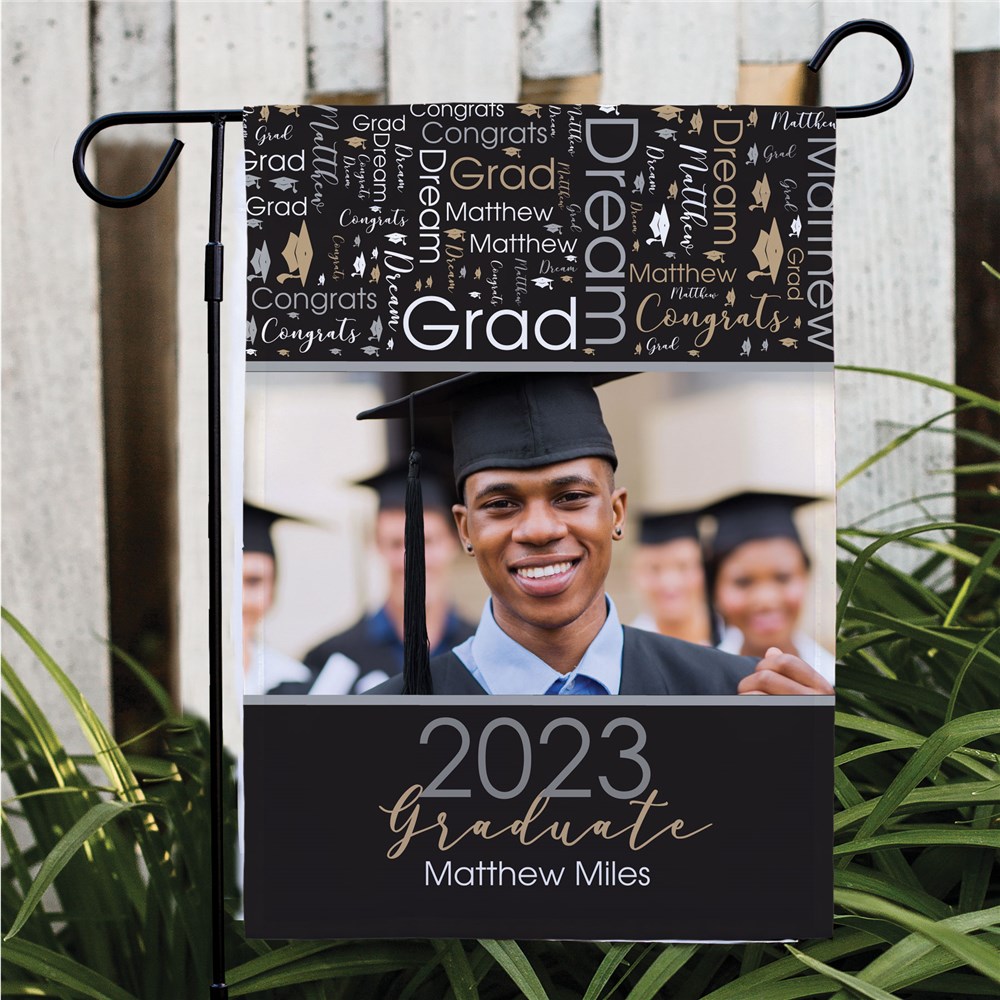 Our Personalized Grad Photo Word-Art Garden Flag is a unique way to showcase the accomplishments of any grad.