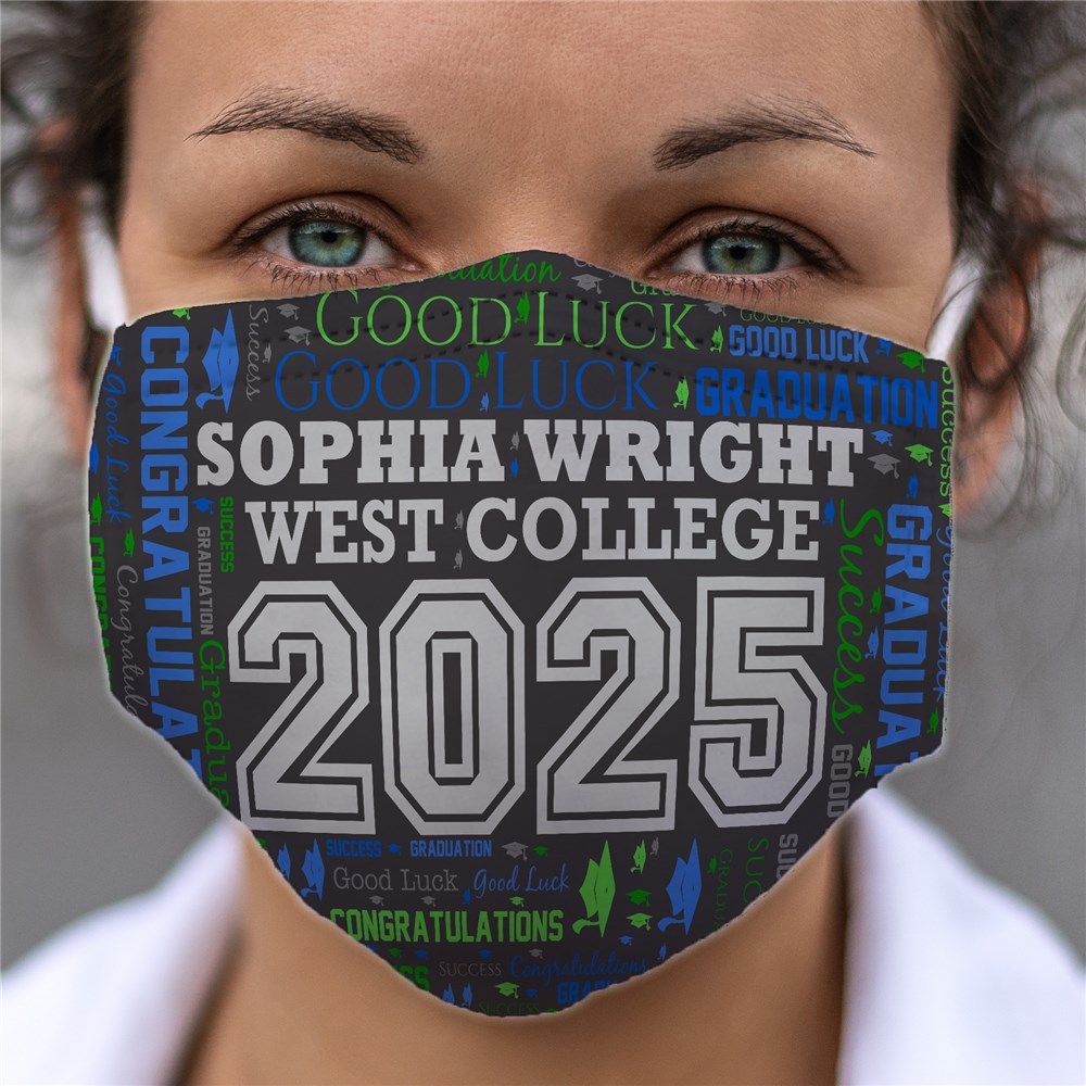 Stay safe during your graduation ceremony or party with our Personalized Grad Word Art Face Mask.