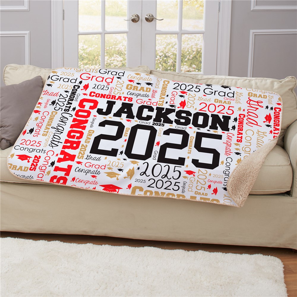 Our Personalized Grad Word Art Sherpa Blanket makes a great graduation gift for any grad!