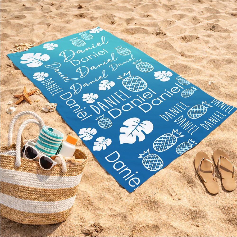 Spend sunny summer days laying out by the pool or beach with our Personalized Gradient Word Art Beach Towel!