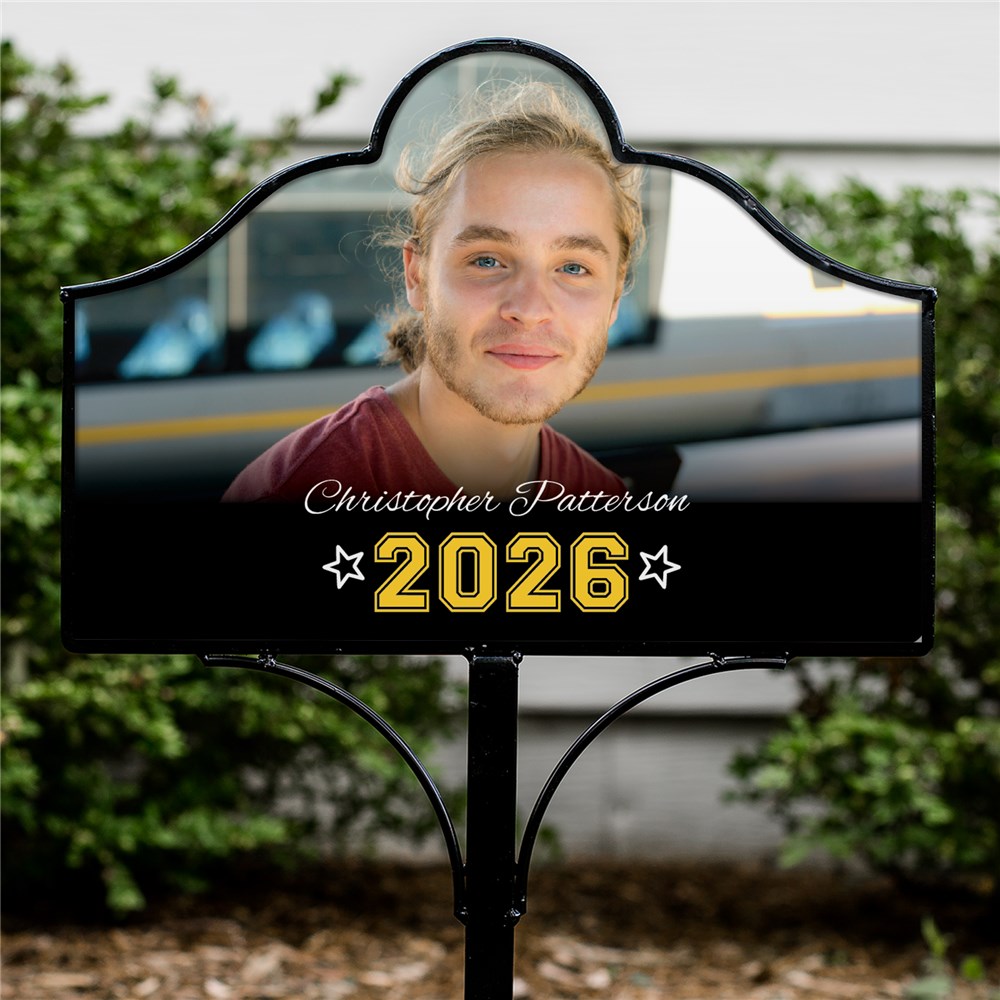Congratulate your grad with our Personalized Graduation Photo Magnetic Yard Sign Set.Personalize with any photo, year, custom message line, bottom design color and year text color.