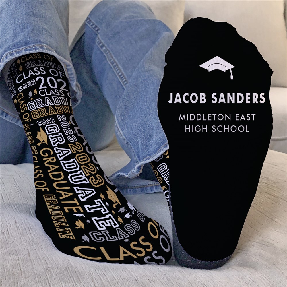 Our Personalized Graduation Year Word Art Crew Socks are a fun way to commemorate this big achievement!