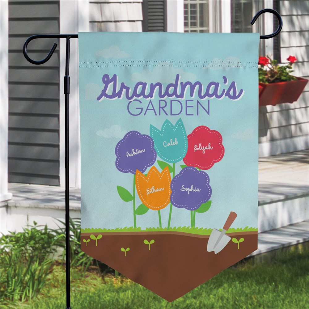 Her garden just got a whole light brighter with the addition of our Personalized Grandma's Garden Pennant Garden Flag.
