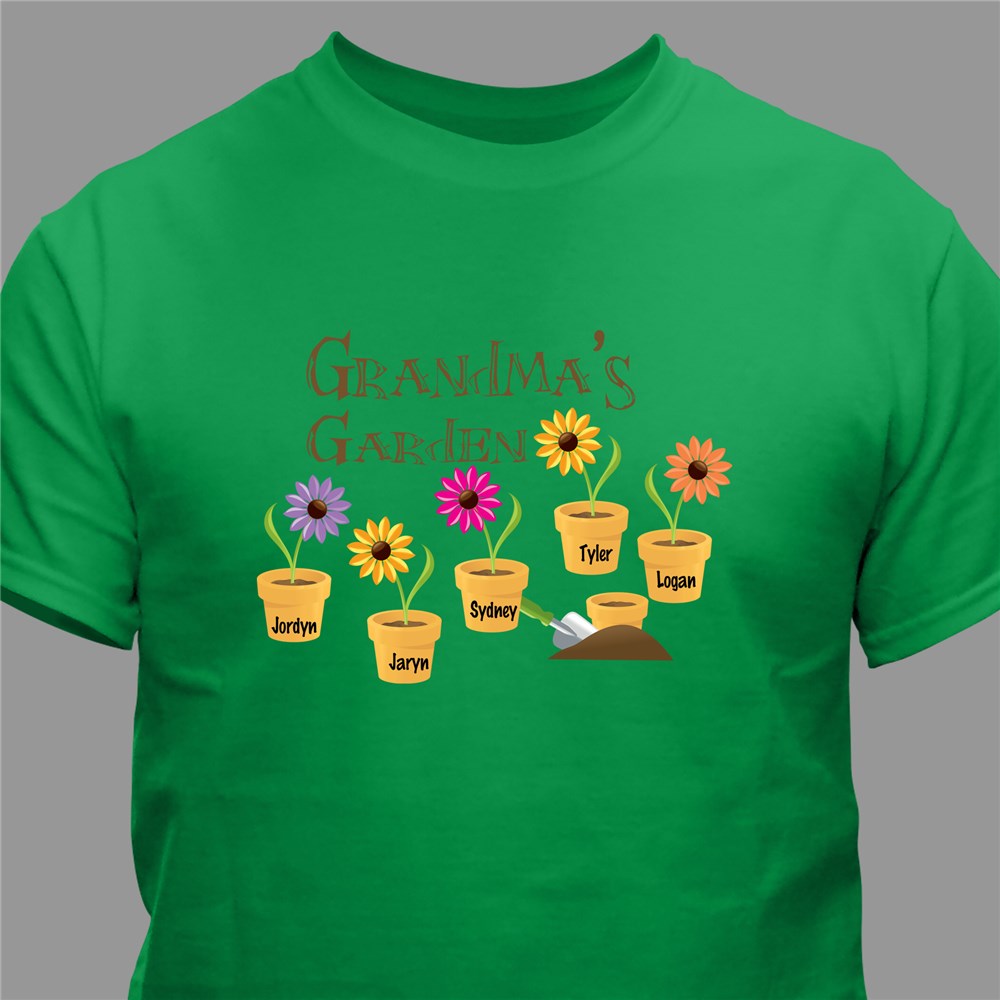 Grandma — or Nana or Mom or teacher or any title you want — will get to proudly display all her beautiful blossoms with this custom printed garden t-shirt.