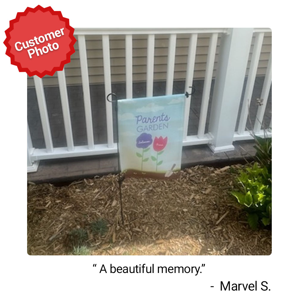 Her garden just got a whole light brighter when this Personalized Grandma's Garden Yard Flag is displayed. Featuring the names of her children/grandchildren, this pretty spring flag will become a permanent fixture in Grandma's or Mom's yard or garden bed. Personalize this garden flag with any title and up to 12 names to make a customized garden decoration she will love.
