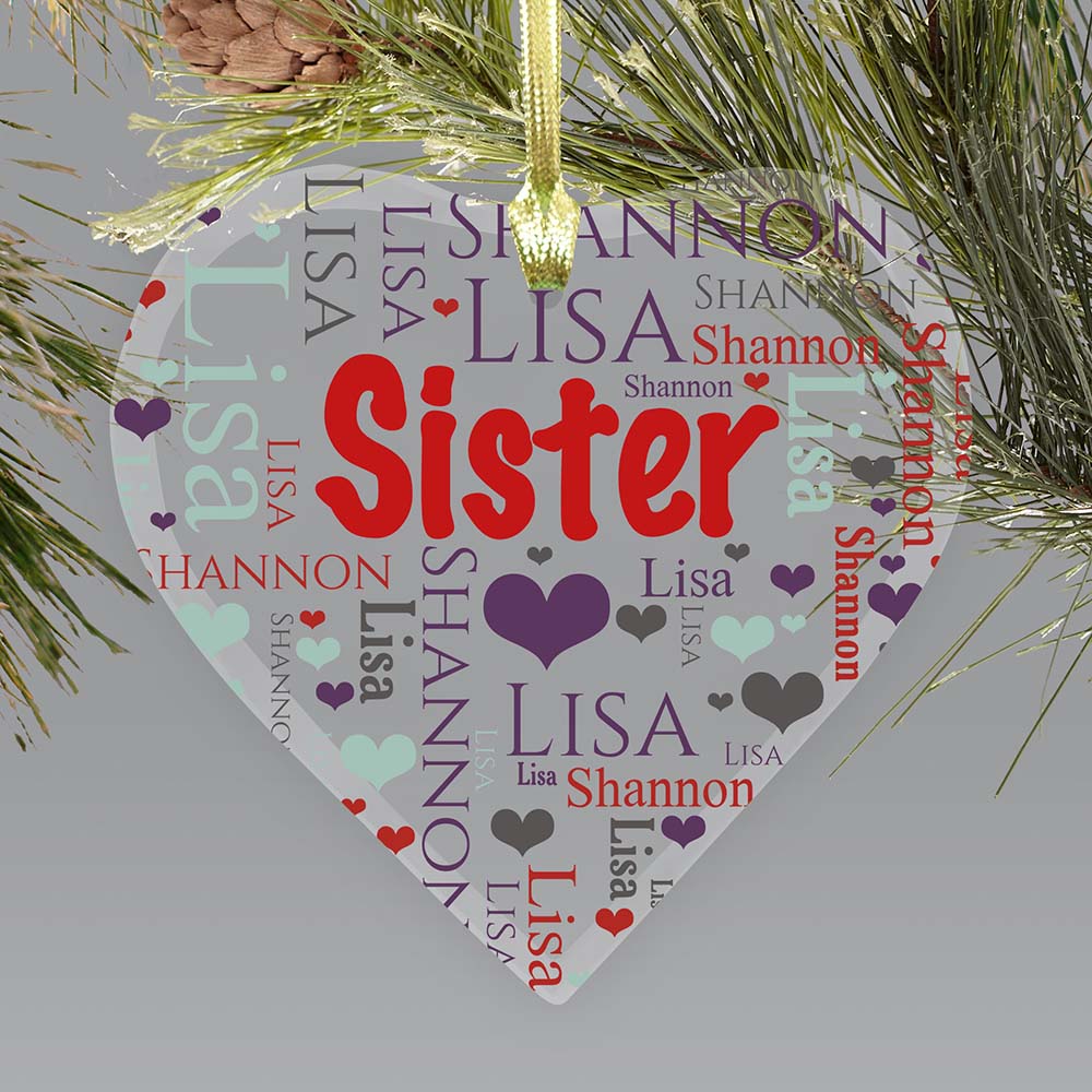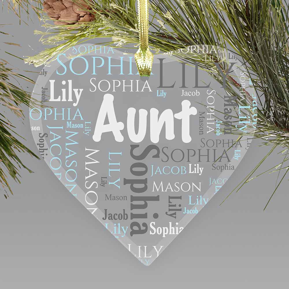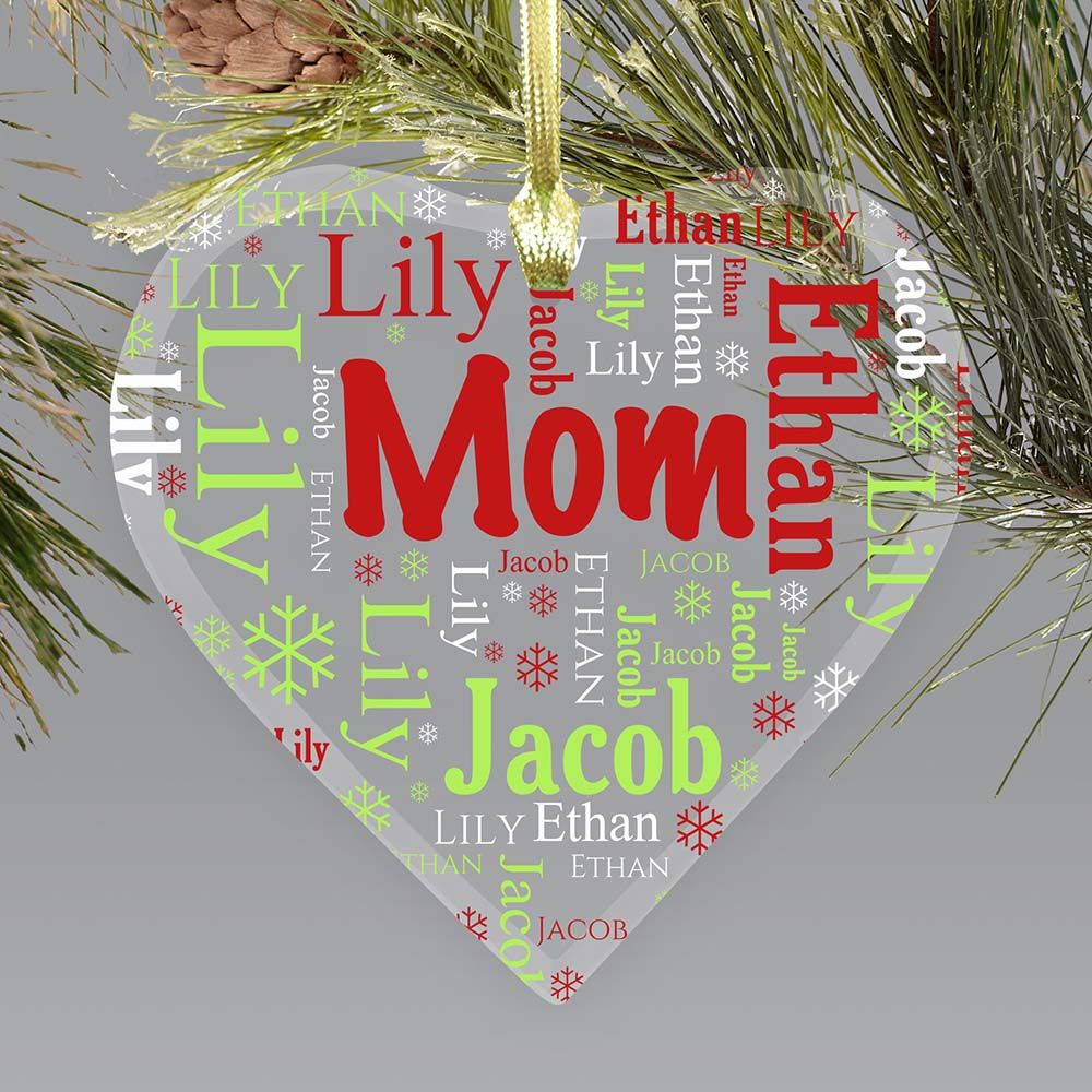 Each one of her family members will be featured in a loving heart design created using our word art tool on one of these Personalized Grandparent Ornaments.