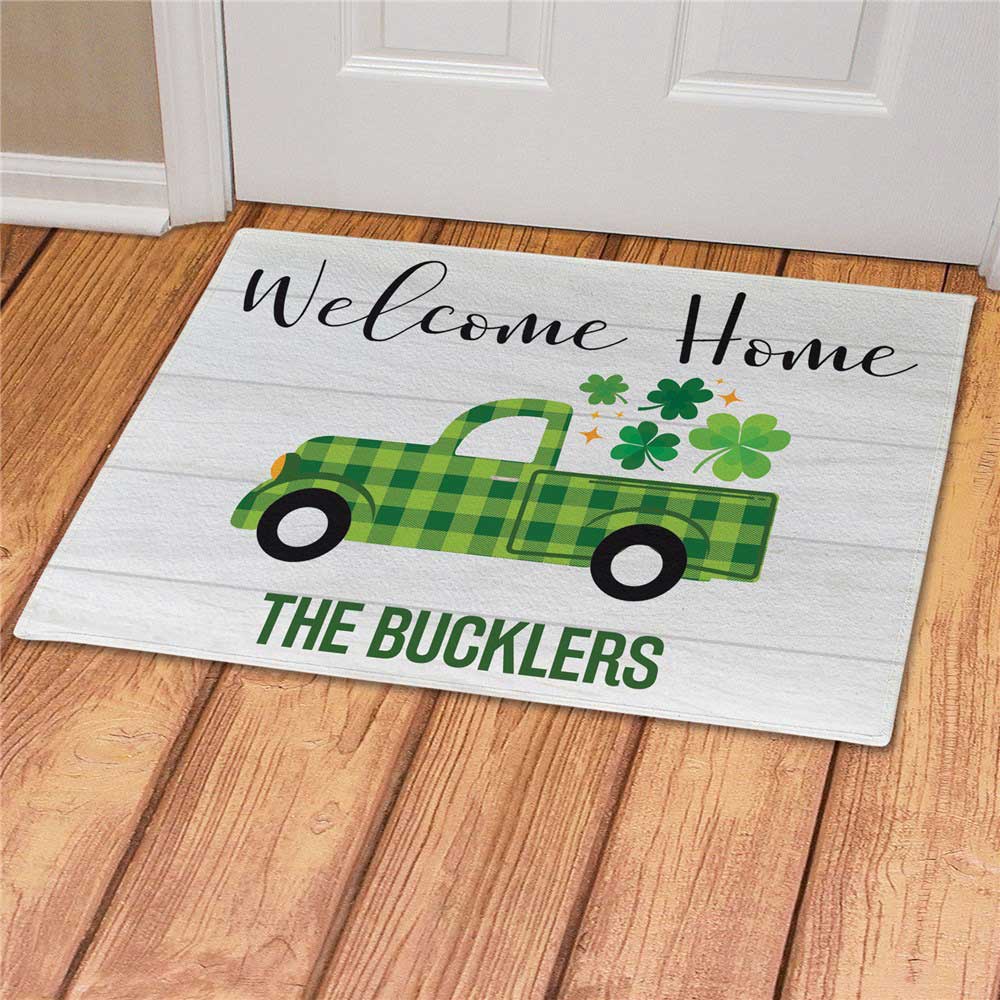 Bring luck to your home this St. Paddy's Day with our Personalized Green Plaid Truck Doormat!