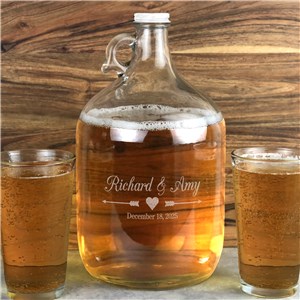 .Engraved Arrows and Heart Wedding Glass Growler