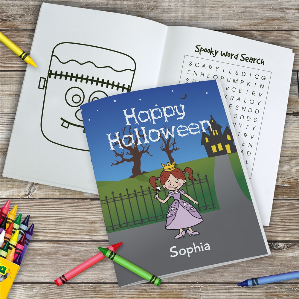 We'll custom personalize this coloring book with any name and any Halloween character.