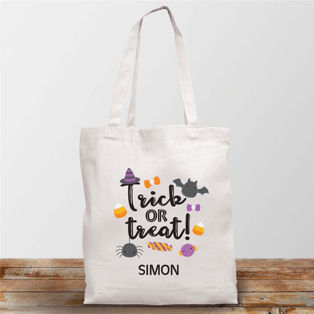 Our Personalized Halloween Trick or Treat White Tote Bag is ideal for a fun filled night of candy collecting!