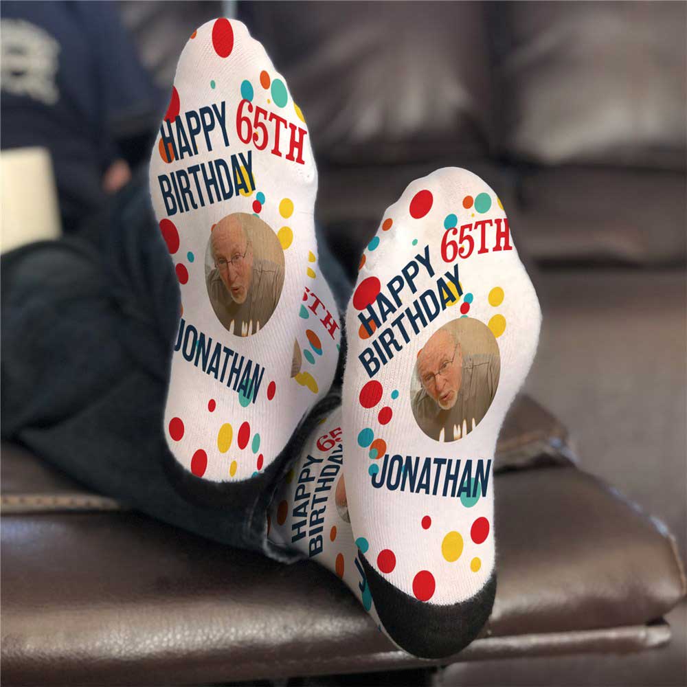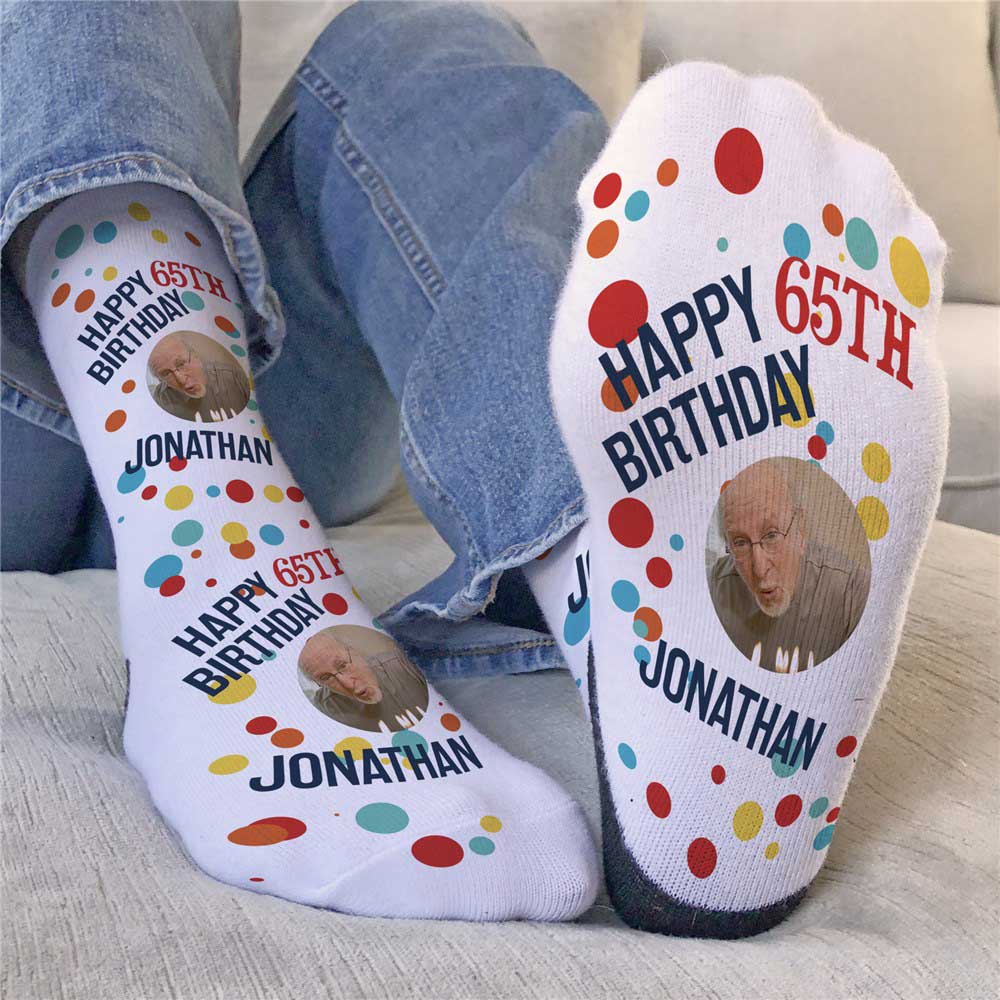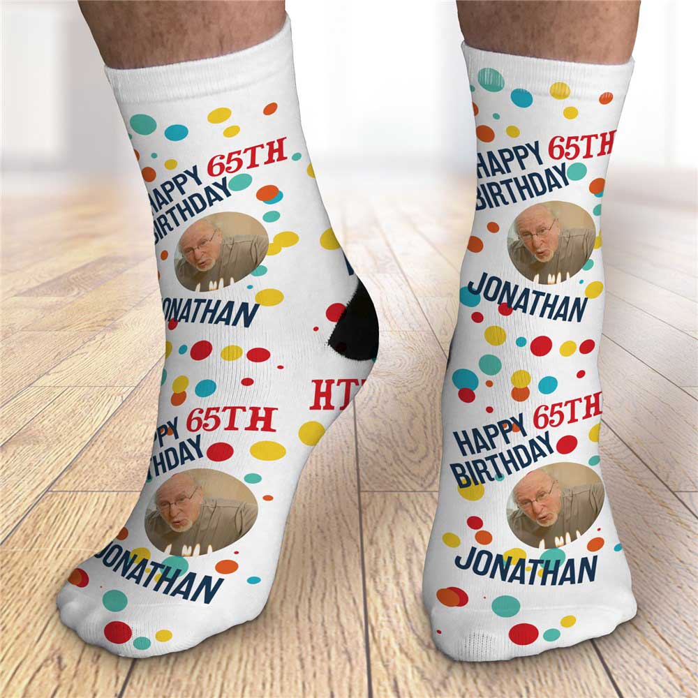 Personalized Happy Birthday Dots with Photo Crew SocksPersonalized Happy Birthday Dots with Photo Crew SocksPersonalized Happy Birthday Dots with Photo Crew Socks