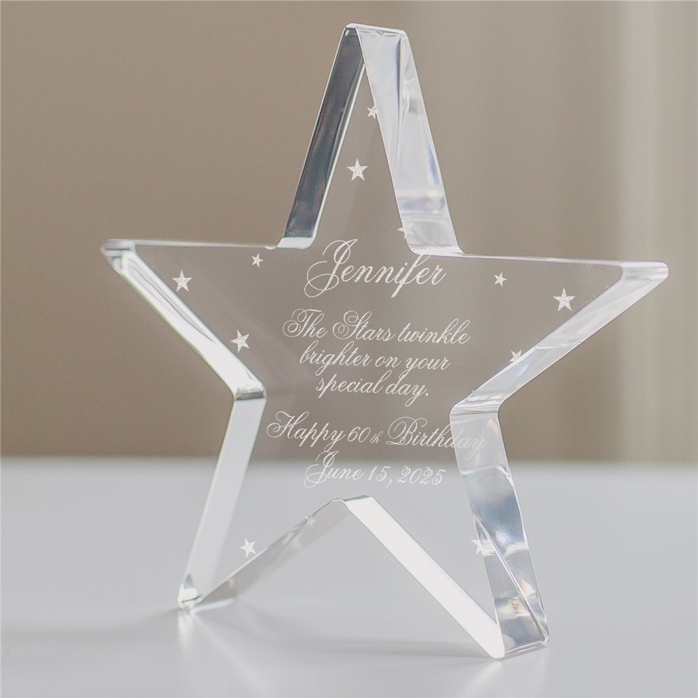 Everyone should feel like a star on their birthday. Our personalized happy birthday star will keep that special feeling going long after the birthday has passed. This elegant custom birthday keepsake may be beautifully engraved with any name (up to 16 characters), age and birth date.