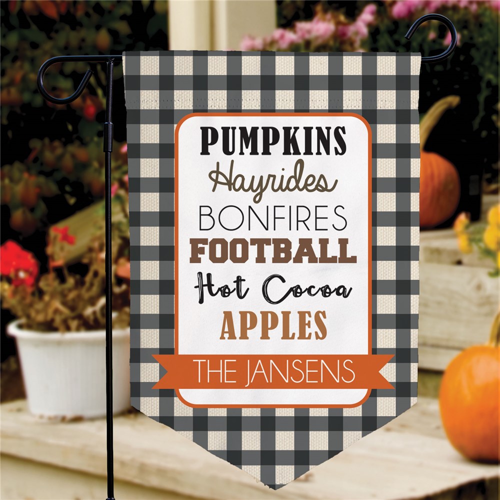Our Personalized Happy Fall Words Pennant Garden Flag is a must-have decoration for families whose favorite season is fall!