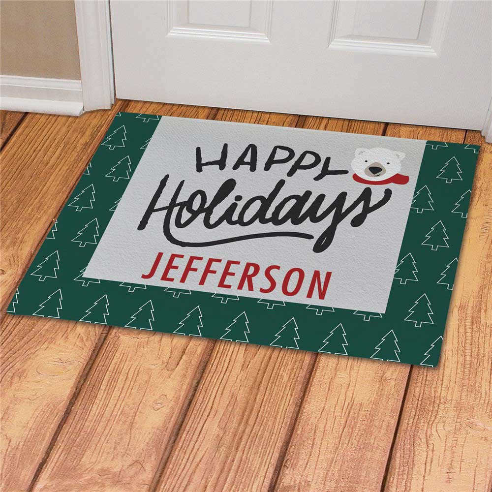 Custom Happy Holidays Doormat with Polar Bear DesignCustom Happy Holidays Doormat with Polar Bear Design