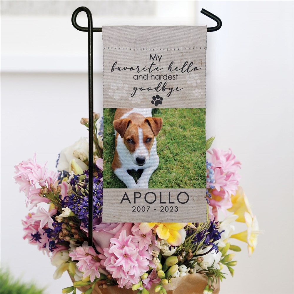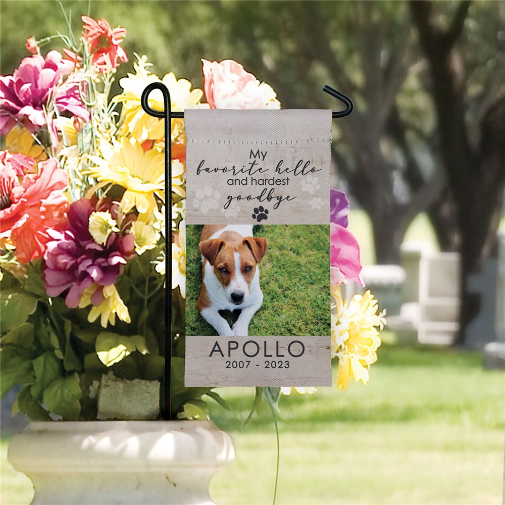 Honor the life of your faithful companion with our Personalized Hardest Goodbye Mini Garden Flag.