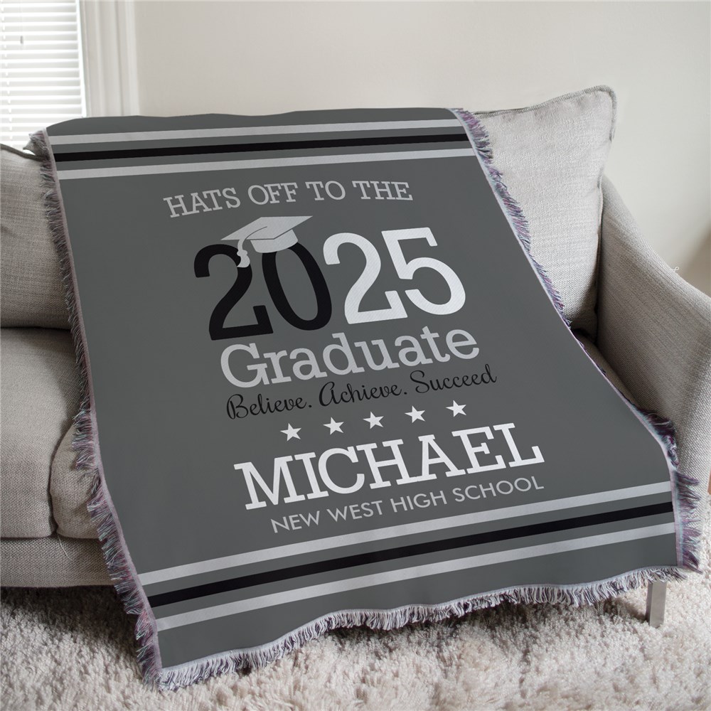 Our Personalized Hats off to the Graduate 50x60 Afghan Throw is a beautiful gift for any graduate.