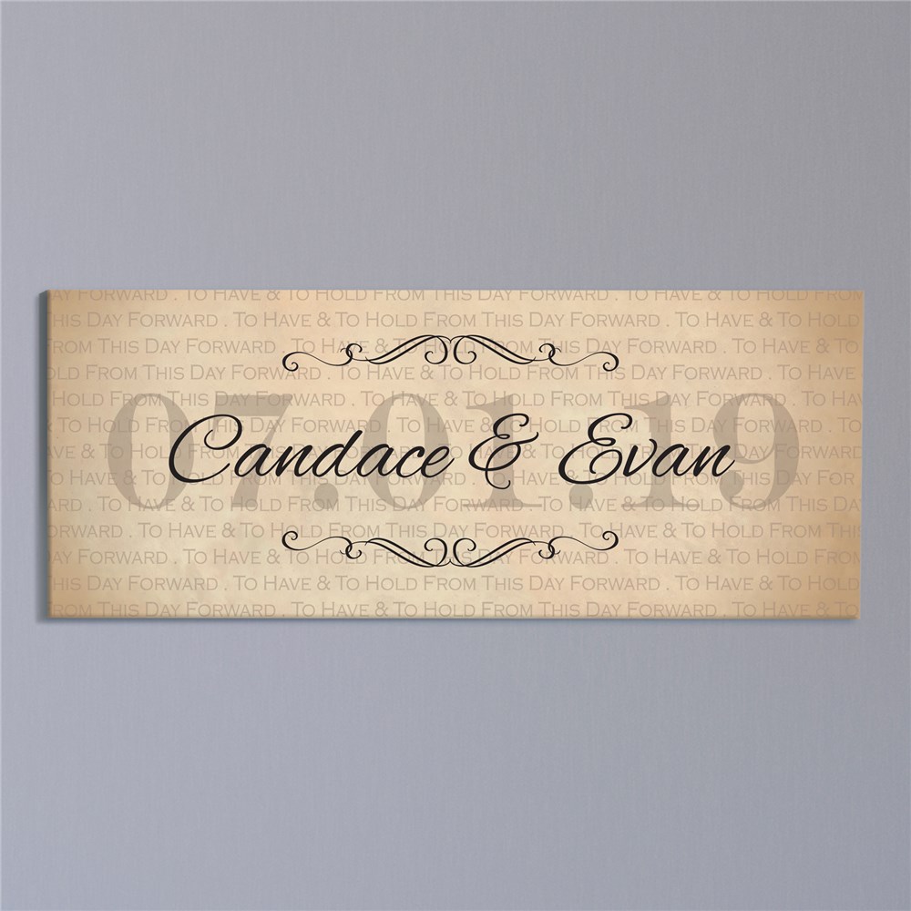 Create a beautiful memory of your wedding day with our Personalized Have and Hold Wedding Canvas.