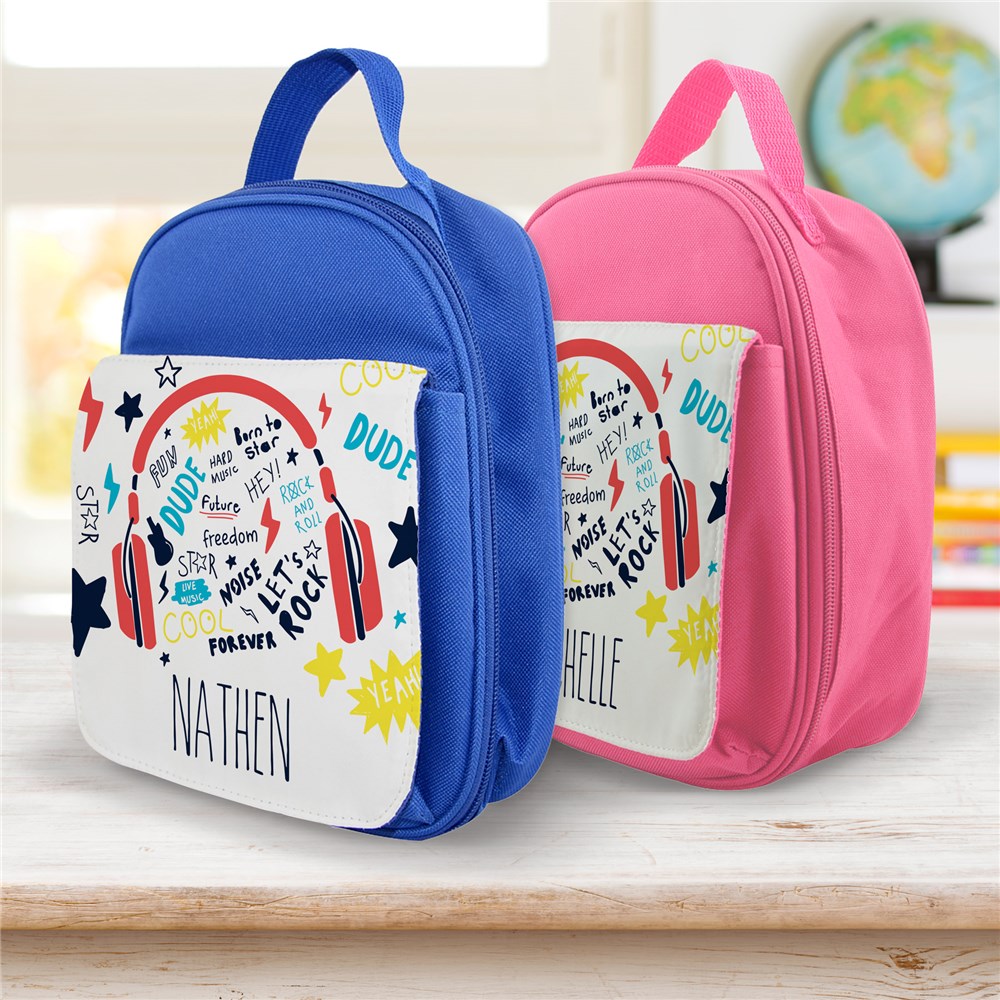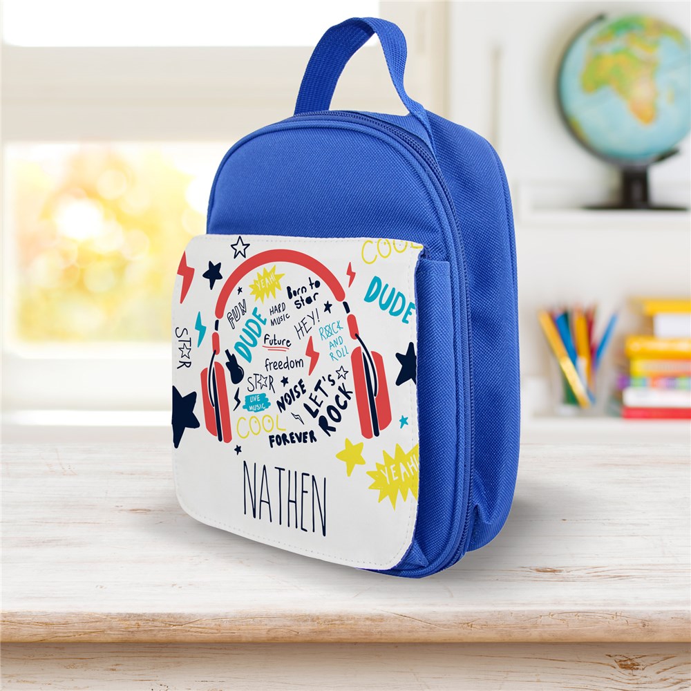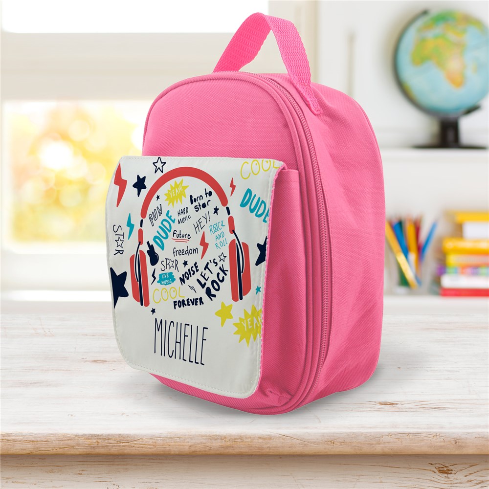 Any music loving youngster will enjoy lunch time even more with our Personalized Headphones Rock Lunch Bag!