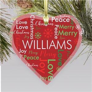 .Personalized Family Christmas Word Art Heart Glass Ornament