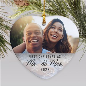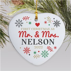 .Engraved First Christmas Mr. and Mrs. Holiday Ornament | Glass Heart