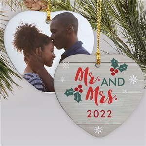 .Personalized Merry & Married Photo Double Sided Heart Ornament