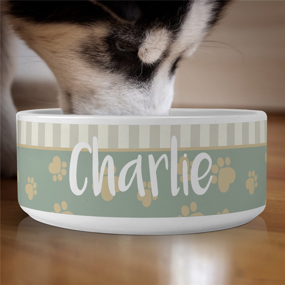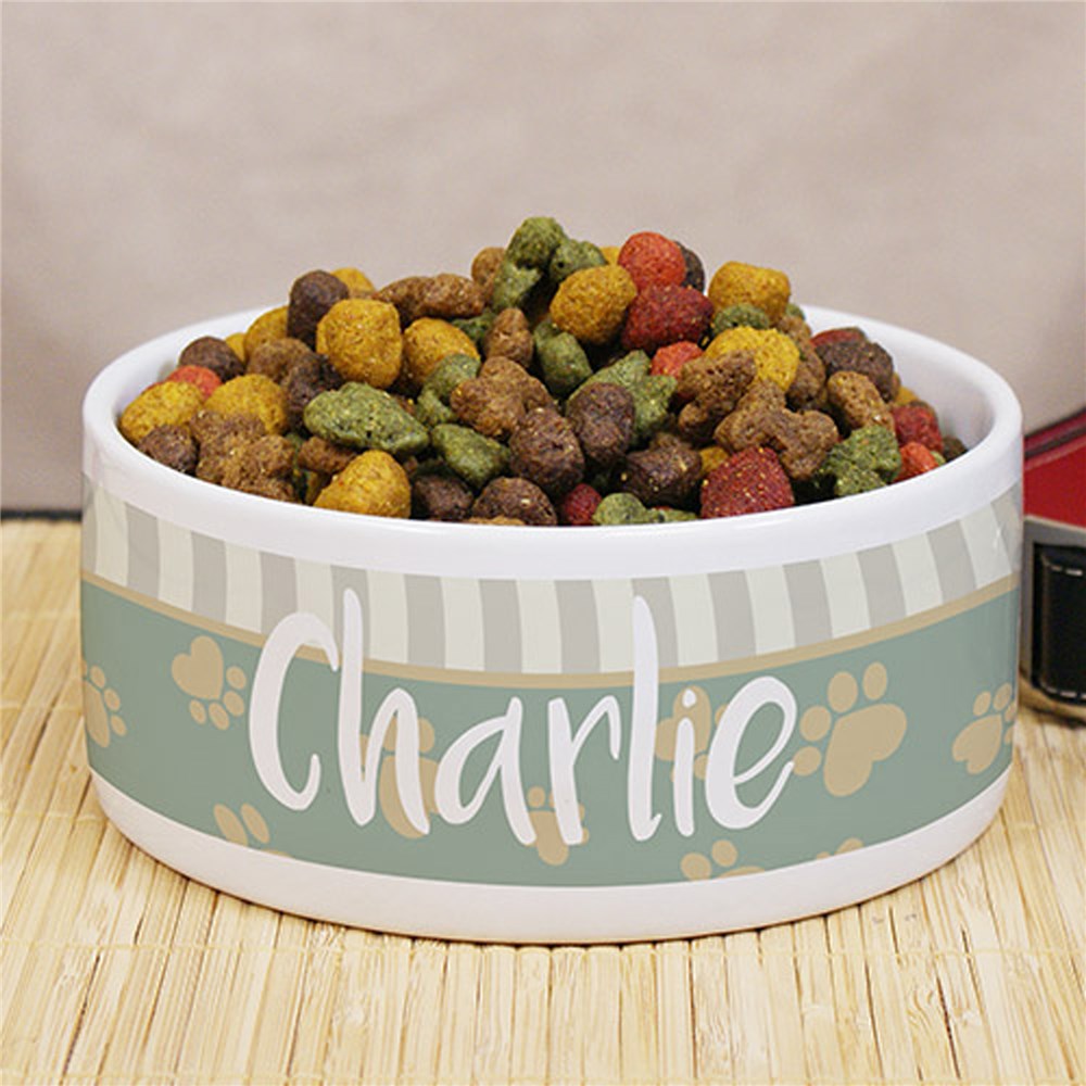 Your dog will be eating in style with a Personalized Heart Paw Pet Food Bowl like this.