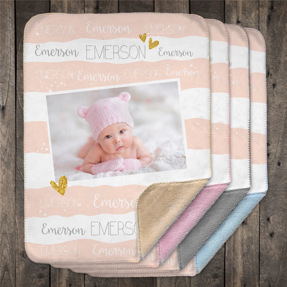 Personalized Hearts and Stripes Photo Sherpa Baby Blanket | Personalized Baby BlanketsPersonalized Hearts and Stripes Photo Sherpa Baby Blanket | Personalized Baby BlanketsPersonalized Hearts and Stripes Photo Sherpa Baby Blanket | Personalized Baby Blankets