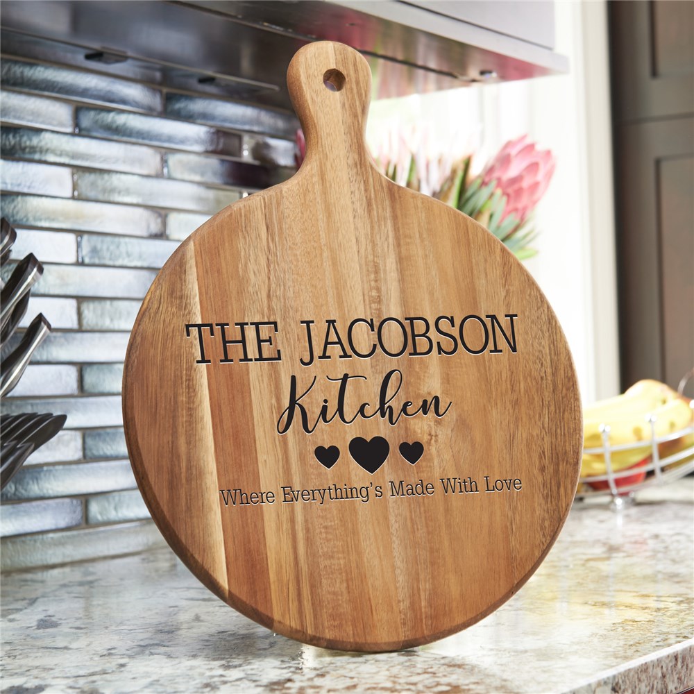 Our Personalized Hearts Where Everything Is Made With Love Acacia Paddle is the perfect decor piece to add to any family kitchen.