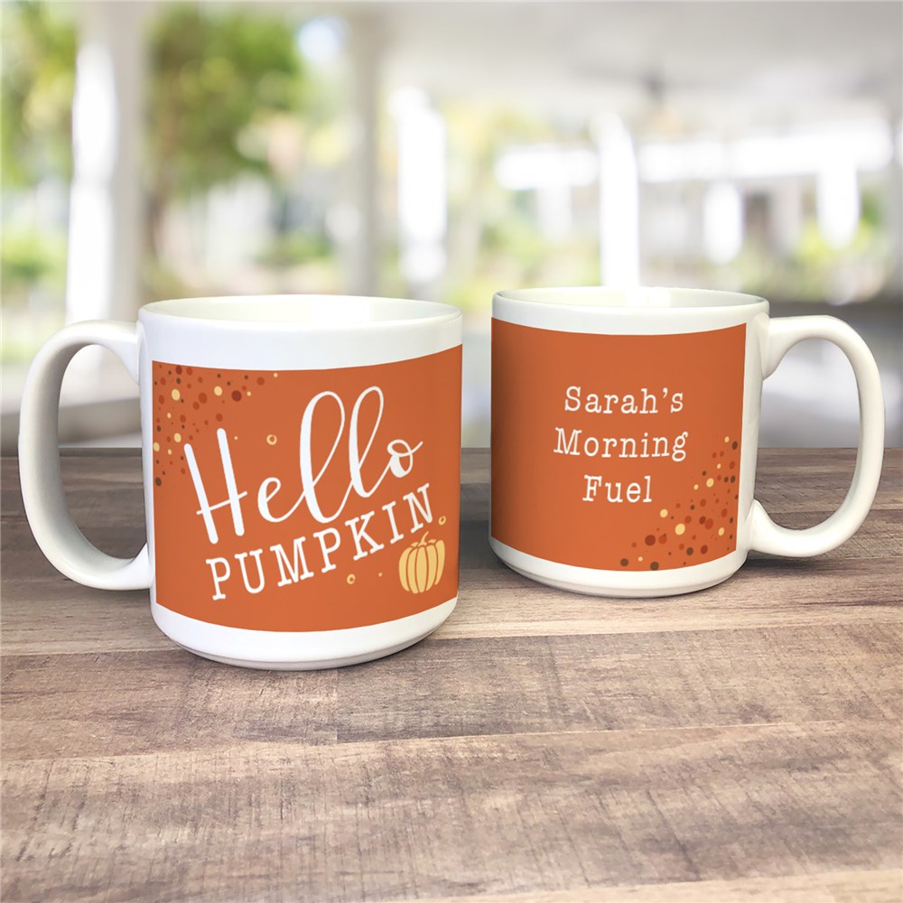 Our Personalized Hello Pumpkin Large Mug is ideal for enjoying your favorite hot beverages this fall, especially anything pumpkin flavored!