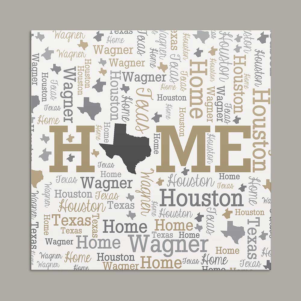 Design a one of a kind canvas to hang in your home that showcases your favorite place in a unique way with our Personalized Home State Word-Art Canvas.