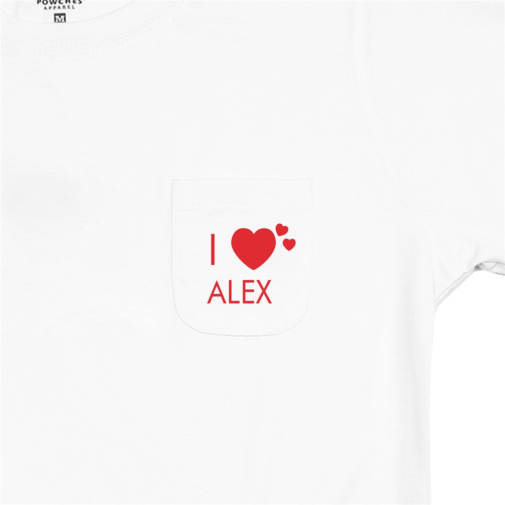 Proudly show off your significant other this Valentine's Day with our Personalized I Heart... Men's Pocket T-shirt.