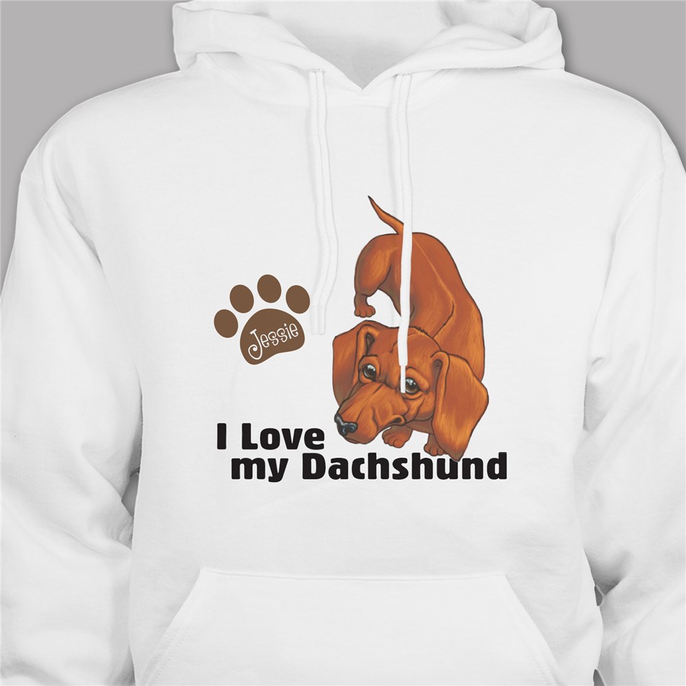 Additional Details This is one personalized gift that will make the dachshund owners you shop for smile. Whether the occasion is a birthday or the holidays, this particular hoodie will be a huge hit. Our Personalized I Love My Dachshund Mug is a great gift, too, and it would complement this one well.