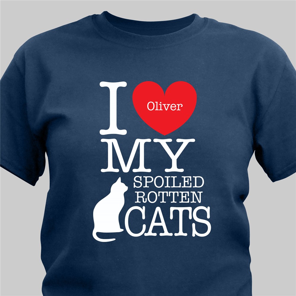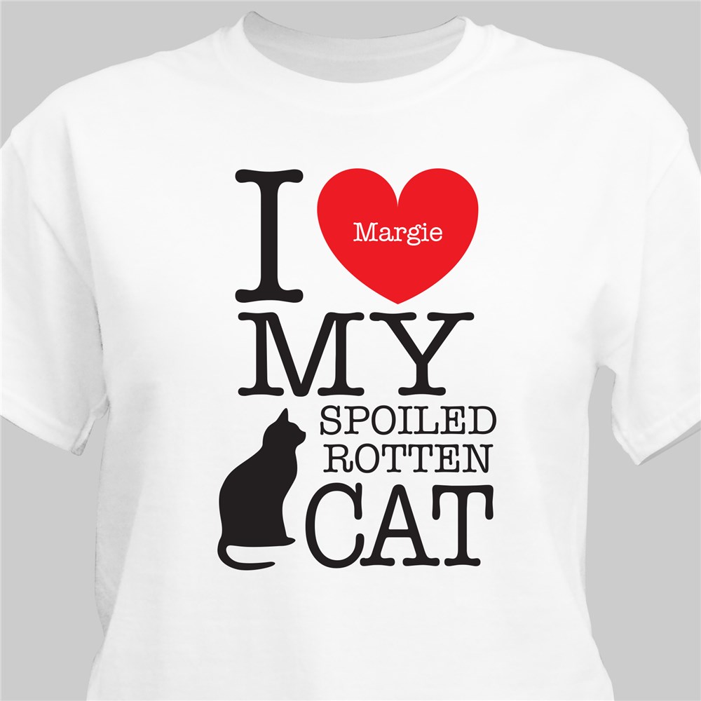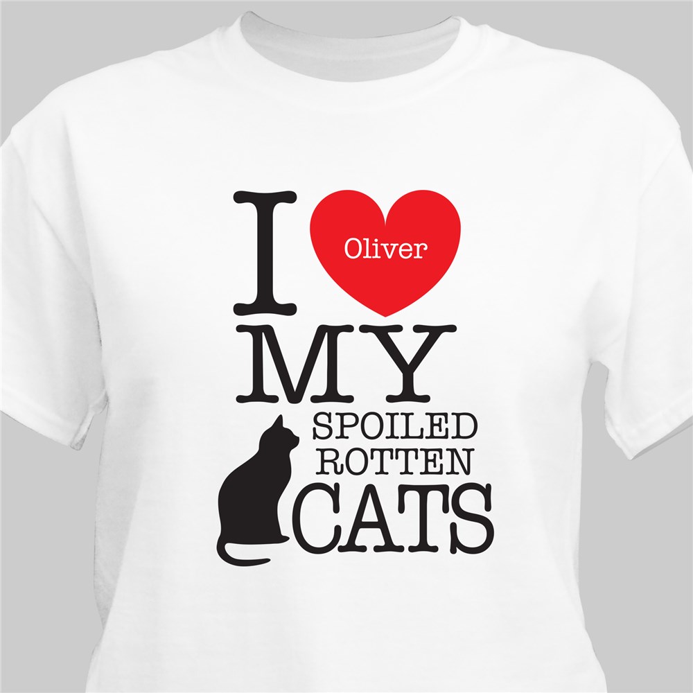Most proud cat owners readily admit to spoiling their precious feline, and if you're someone who fits that description, then these Personalized T-Shirts is for you. Rock this Personalized Shirt with pride and let the world know how much you adore your cat. This Spoiled Cat design is printed on our 100% cotton t-shirts, machine washable in adult sizes S-3XL. Free personalization of any name is included.