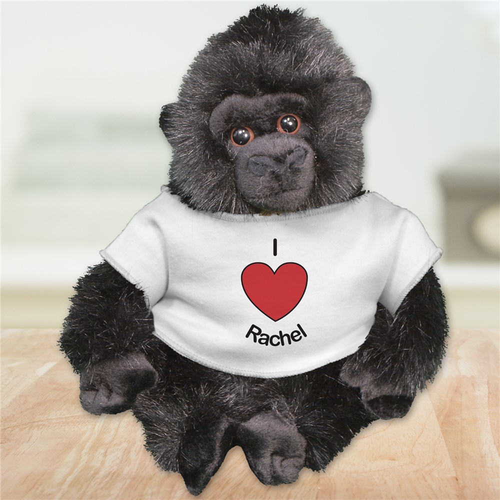 Win over anyone's heart with a Plush "I Heart You" Gorilla! This lovable Primate is an excellent gift for this Valentine's Day, your anniversary or just because. This realistic primate measures 11” tall and is from our Aurora collection. With stunning detailing, this plush Gorilla is made to look like the real thing! Free personalization of any two line custom message is included.