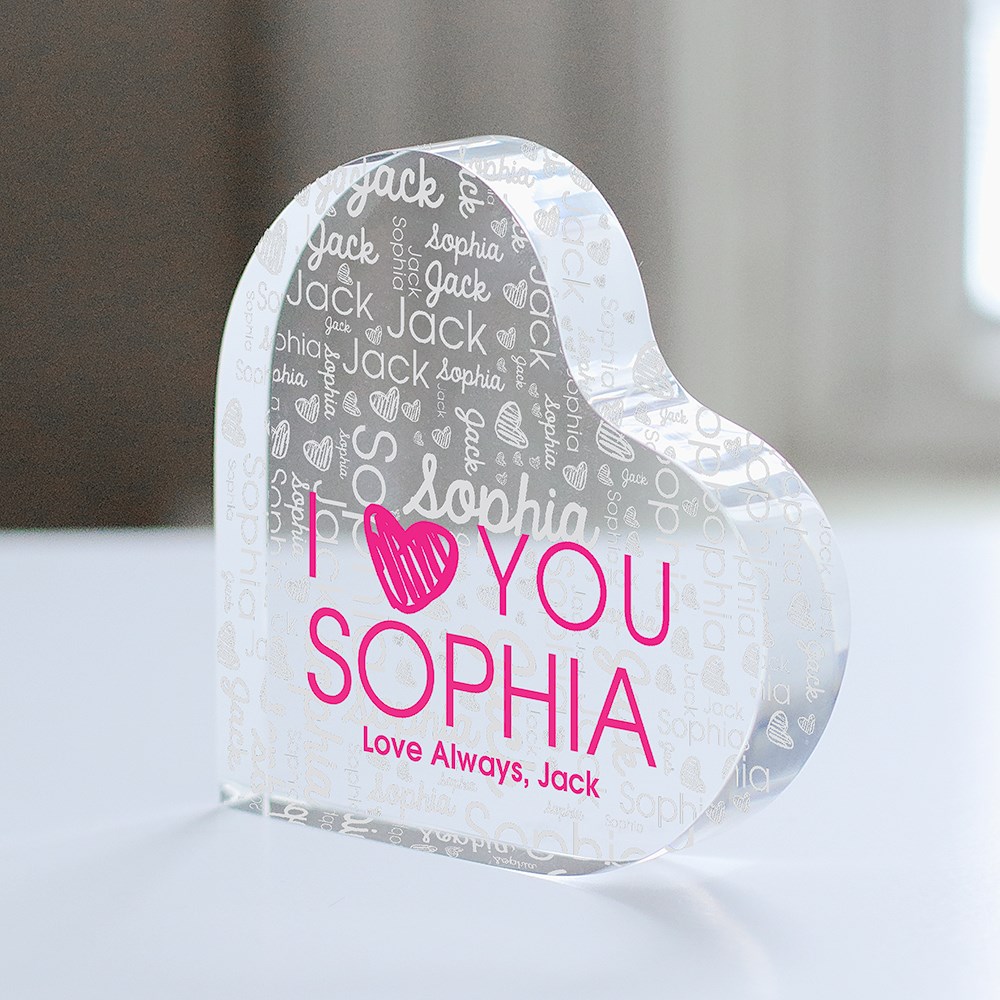 Our Personalized I Love You Word Art Heart Keepsake will make your significant other feel special and loved this Valentine's Day.Use our word art tool to personalize with any names, words and symbols.