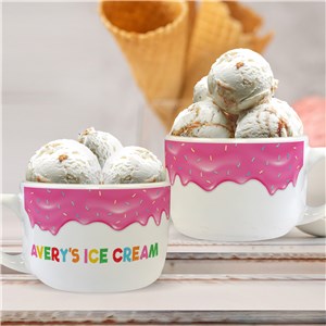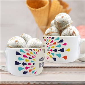 .Personalized Color Burst Ice Cream Bowl with Handle